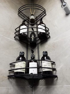 Угловая полка в ванную черная