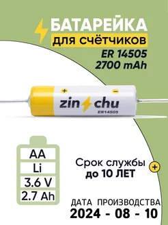 Батарейка литиевая Zinchu er14505 3.6v 2.7Ah для счетчиков