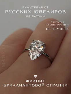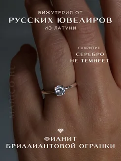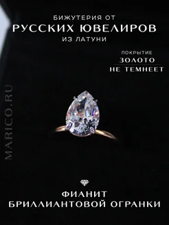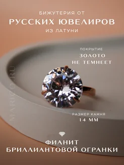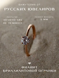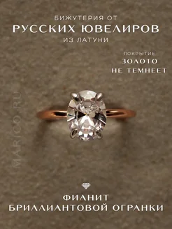 Кольцо тонкое с камнем бижутерия обручальное позолоченное