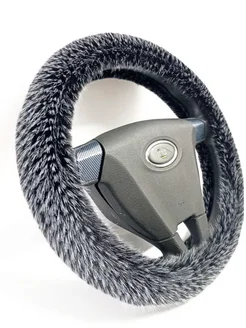 Оплетка на руль искусственный мех черный М 37-39 см