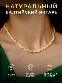 Янтарные бусы женские Змейка из натуральных камней на шею