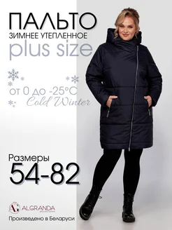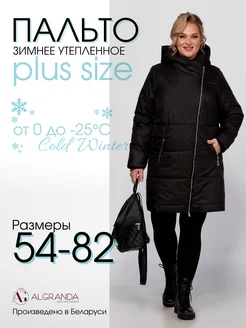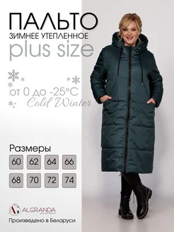 Куртка зимняя теплая удлиненная больших размеров с капюшоном