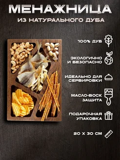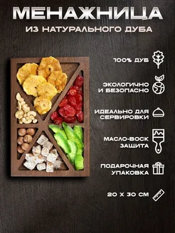 Менажница деревянная ЭКО посуда для сервировки, 4 секции