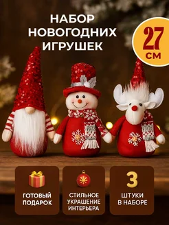 Набор новогодних фигурок под елку олень, снеговик, гном