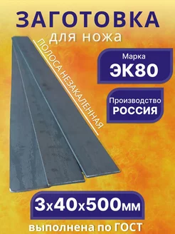 Заготовка для ножа из стали ЭК80(95Х6М3Ф3СТ), 3х40х500 мм