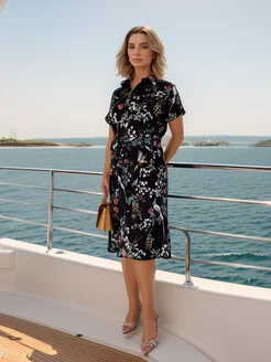 Платье рубашка нарядное на пуговицах рукав 3 4