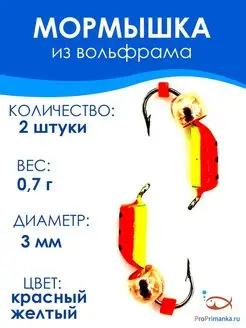 Мормышка Шарик медный Красный, Желтый D3,0мм 2шт