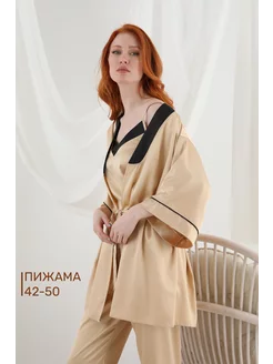 Пижама с шортами кимоно шелковая