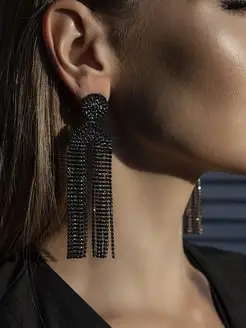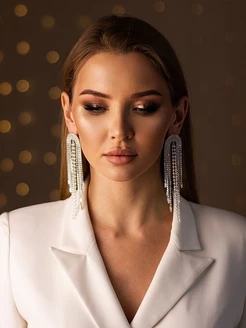 Серьги гвоздики длинные вечерние со стразами и жемчугом