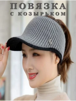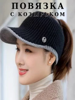 Бейсболка теплая Повязка на голову с козырьком Кепка вязаная