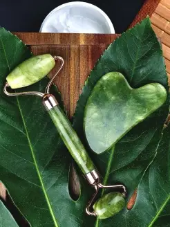 Набор из темного нефрита. Роллер-массажер + скребок для масс…