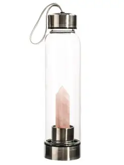 Бутылка с гармонизатором из натурального камня розовый кварц