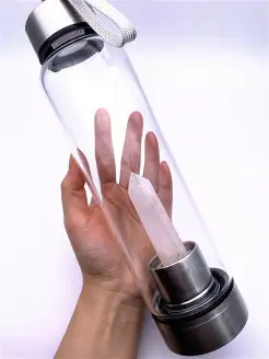 Бутылка с гармонизатором из натур. камня горный хрусталь