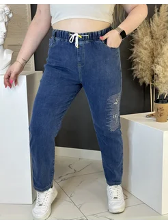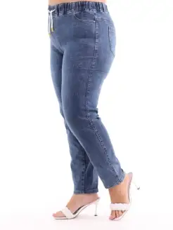 Джинсы женские больших размеров, высокая посадка, на резинке