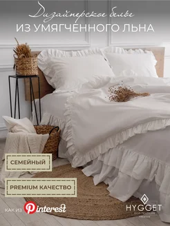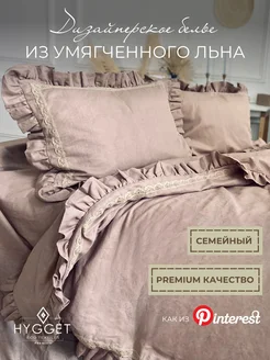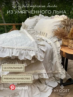 Постельное белье евро льняное с рюшами и кружевом KATARINA