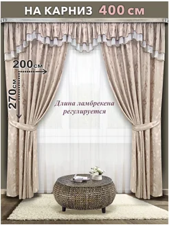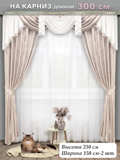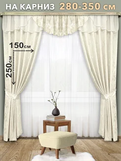 Шторы жаккард мрамор с ламбрекеном 400*250
