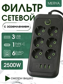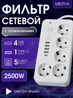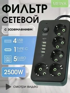 Удлинитель сетевой фильтр с USB -type-C
