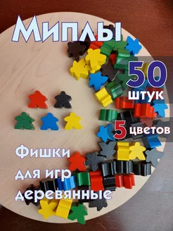 Миплы, фишки для настольных игр 50 штук, 5 цветов