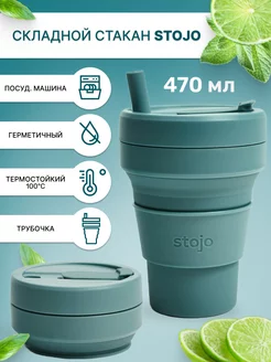 Складной стакан с крышкой и трубочкой для кофе и чая, 470 мл