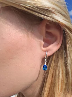 Ювелирные серьги капли серебро сапфир
