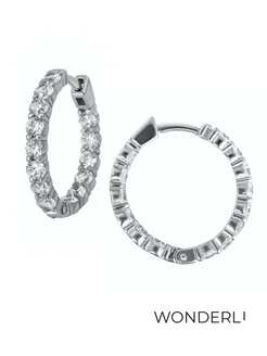 Серьги-кольца конго серебряные с фианитами