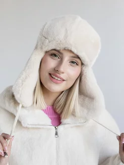 Шапка ушанка зимняя молочная