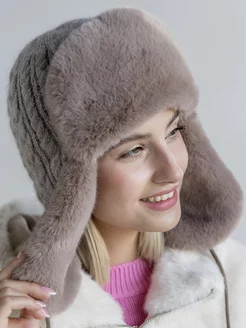 Шапка ушанка зимняя бежевая