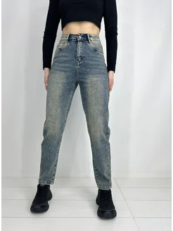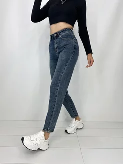 Джинсы мом с высокой посадкой укороченные