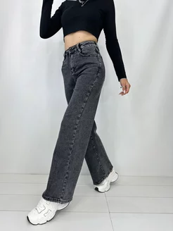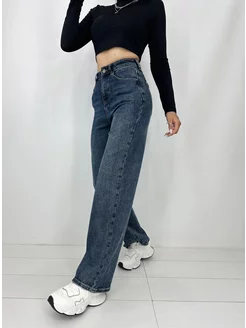 Джинсы широкие трубы с высокой посадкой