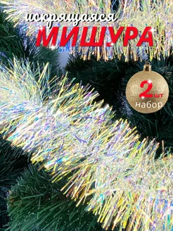 Мишура новогодняя на елку радужная - 3 шт набор