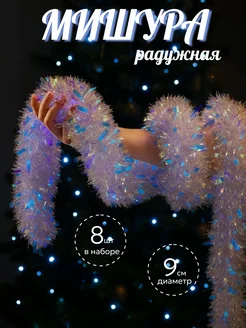 Мишура новогодняя пушистая на елку для декора - 8 шт