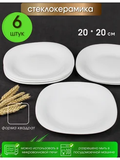 Тарелка плоская квадратная 6 шт стеклокерамика