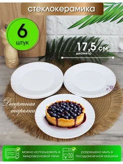 Тарелка десертная плоская d17.5 см набор 6 шт стеклокерамика