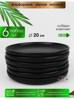 Набор плоских черных матовых тарелок 20 см 6 шт