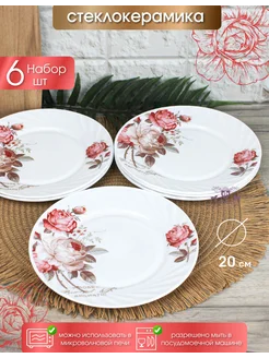 Тарелка плоская с рисунком набор 6 шт d20 см Розы