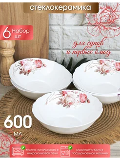 Тарелка глубокая суповая с рисунком 6 шт 600мл