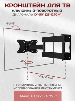 Кронштейн для телевизора 10"-50" наклон - поворот 2 колена