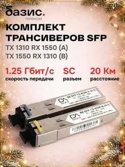 Комплект оптических модулей SFP 1,25 Гбит с, SC, 20км