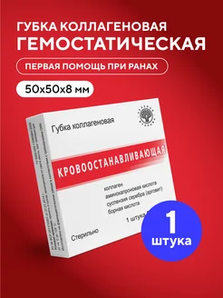 Губка гемостатическая кровоостанавливающая 50х50х8 мм 1 шт