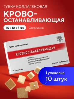 Гемостатическая губка кровоостанавливающая 10х10 мм, 10 шт