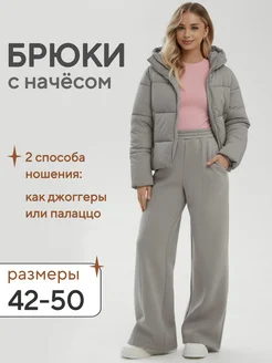 Брюки джоггеры утепленные с начесом на резинке зимние