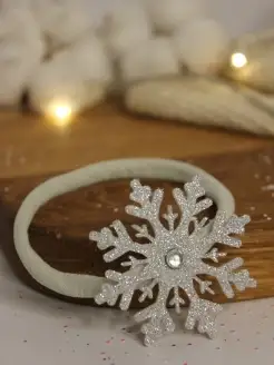 Новогодняя детская повязка бантик Снежинка классическая