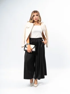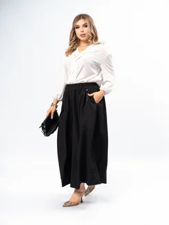 Юбка-брюки черный матовый шёлк оверсайз