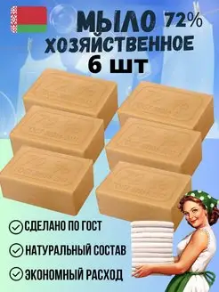 Мыло хозяйственное натуральное для стирки 72% гост 6 шт