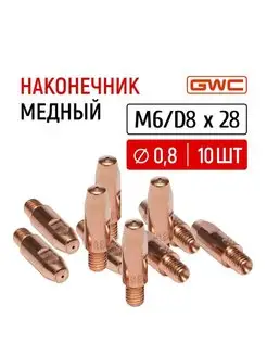 Наконечник медный для полуавтомата M6 D8x28 д0,8 мм,10шт