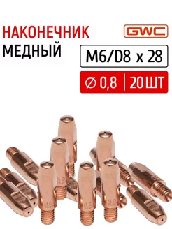 Наконечник медный для полуавтомата M6 D8x28 д0,8 мм 20шт