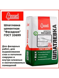 Шпатлевка на основе белого цемента 20кг Фасадная
