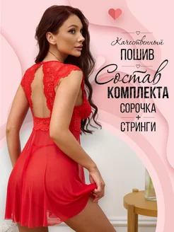 Сорочка ночная эротическая кружевная секси комплект