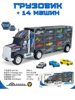 Грузовик Truck с 14 машинками, трек кейс для машин
