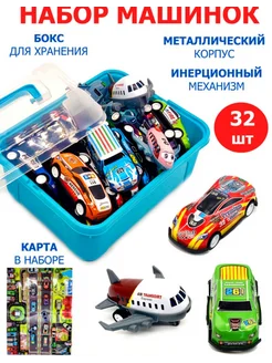 Набор машинок 28 шт + 4 самолетика в кейсе с картой для игры